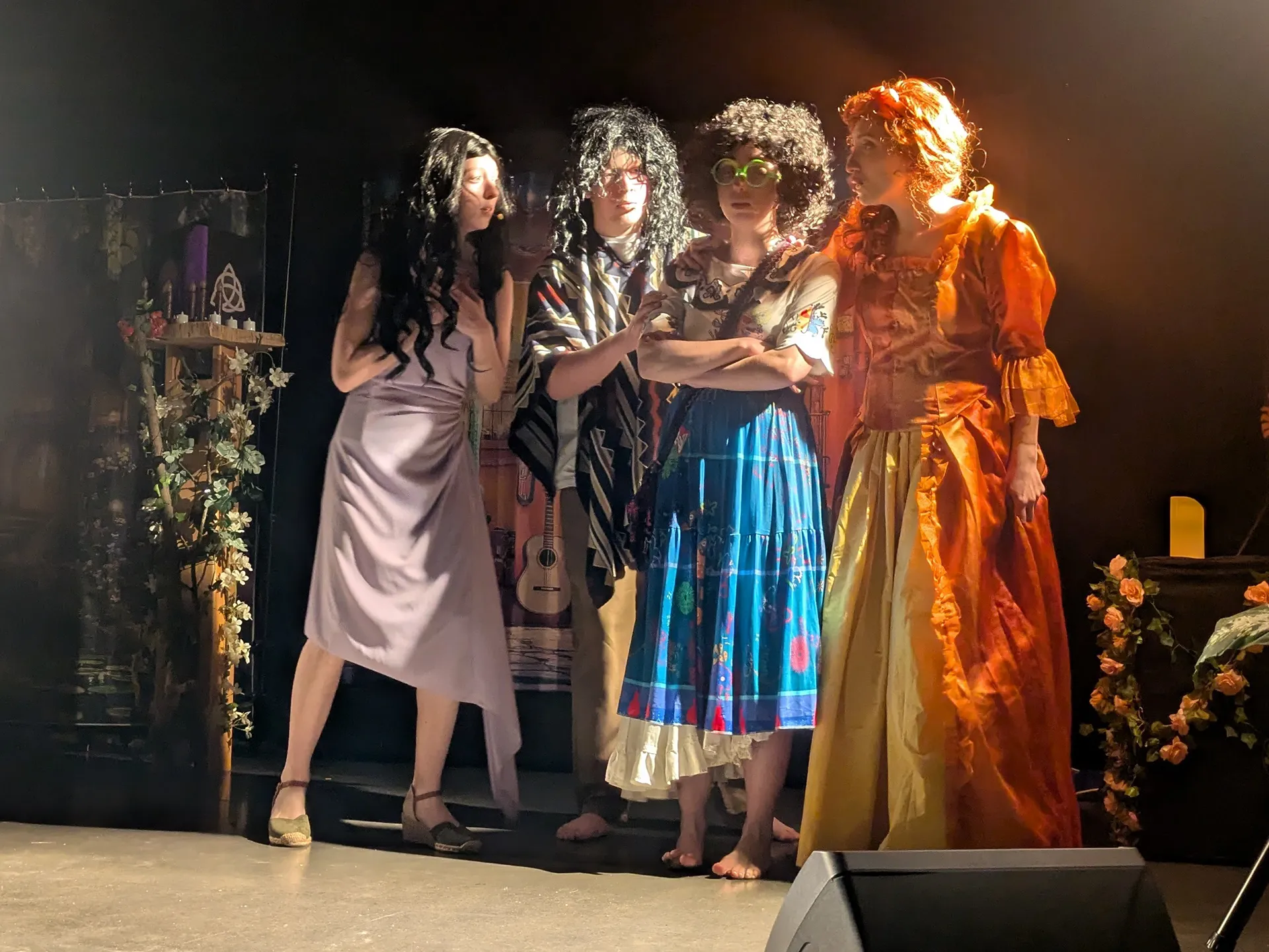 Nous sommes 100% autonomes : son, lumière, costumes et décors et pouvons nous produire aussi bien en extérieur qu'en intérieur, sur l'espace public, sur scène, en salle, ou sous forme de spectacle vivant, parmis le public.